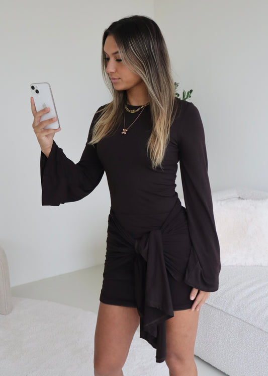 TIE DRESS BROWN